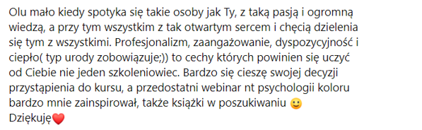 Moje kursy, szkolenia i webinary zbierają same dobre opinie, sama zobacz: